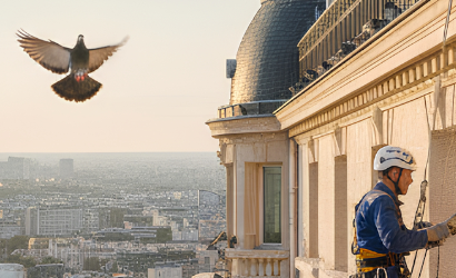 Effarouchement et protection durable contre oiseaux : pose de pics et filets sur toitures, façades, intérieurs et monuments, avec matériaux résistants pour une protection complète.